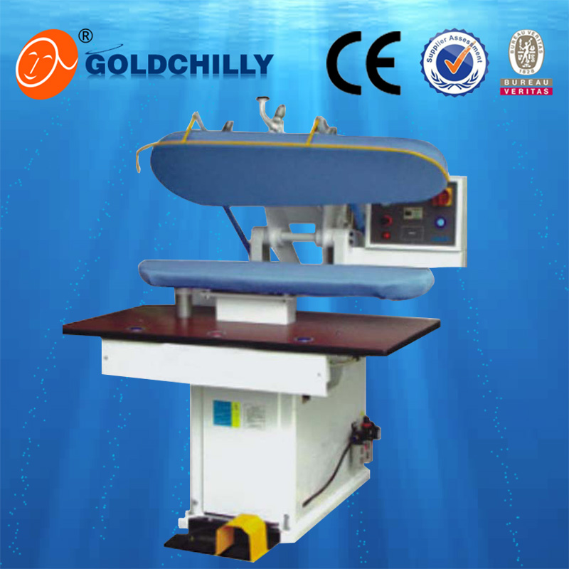 This dry-cleaning pressing machine is operated with hand pulling and foot step way. It is with simple and practical design so that you can save energy.Because of the unique design of science and technology,it not only has heat preservation, safety and energy saving function but also make steam quickly spread.What is more,ironing pressure is adjustable for different thicknesses of clothing.
